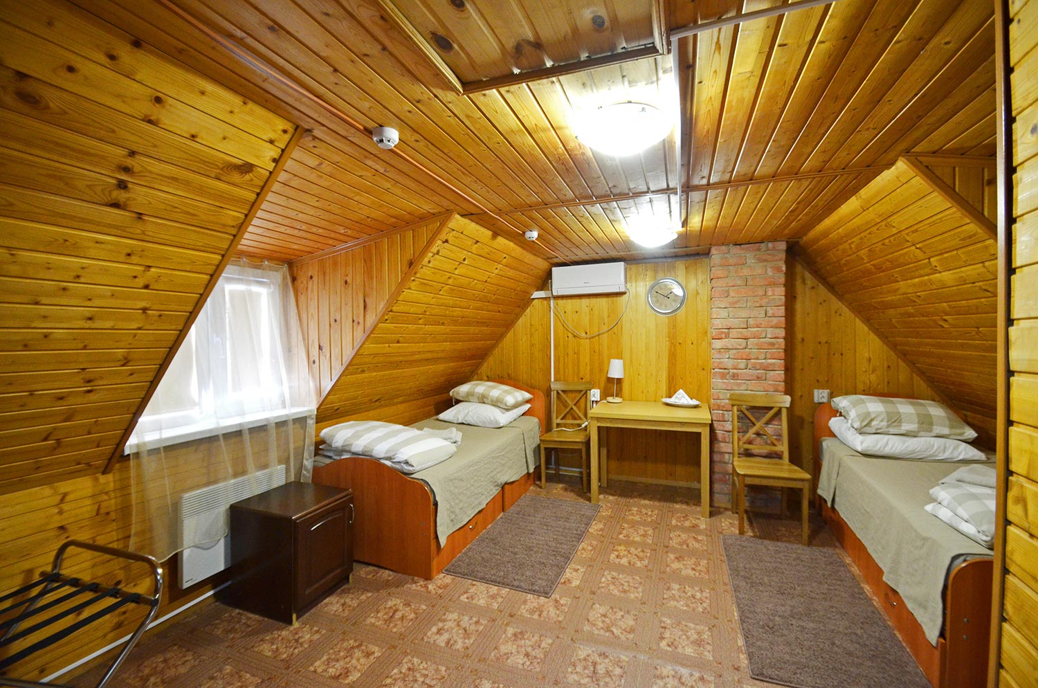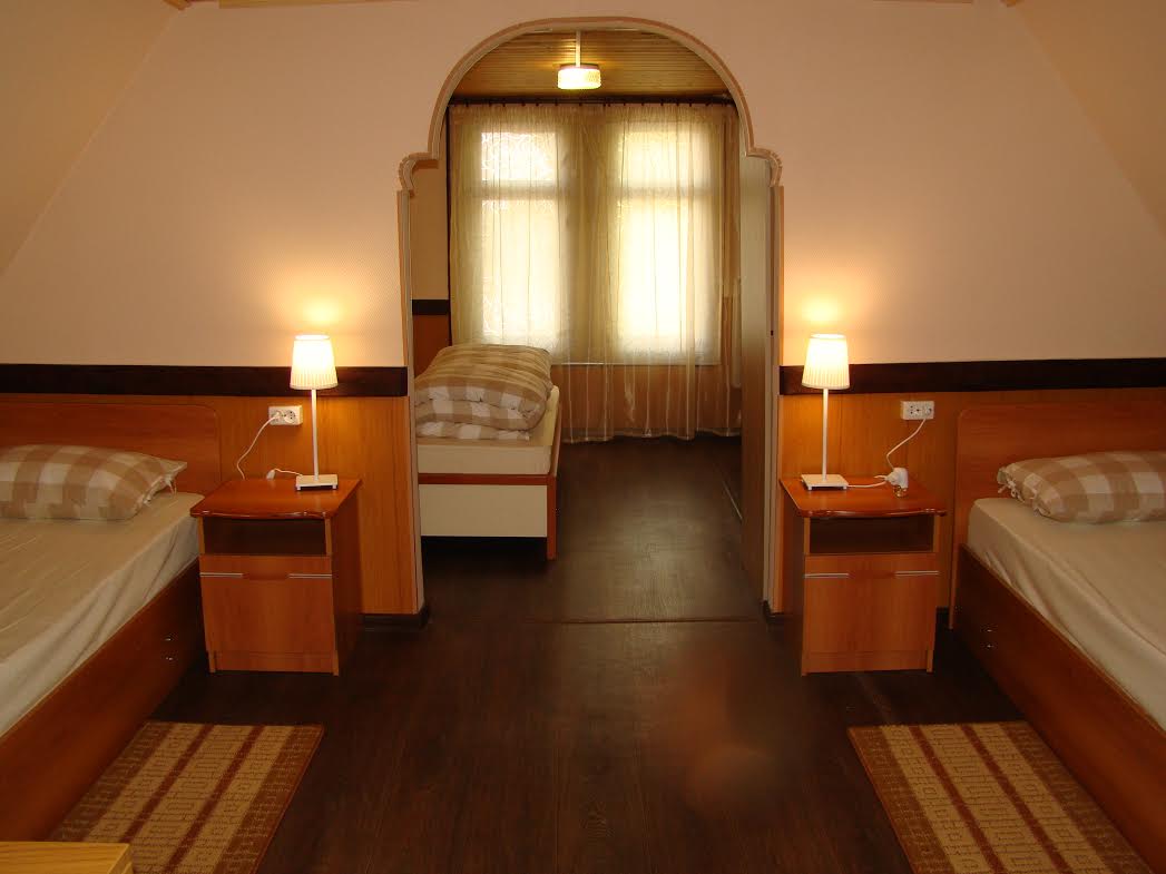 В наличии два номера с общей душевой кабиной на этаже между номерами (туалет и раковина есть в каждом номере). Вариант очень интересен для проживания большой компании друзей или двух семей.