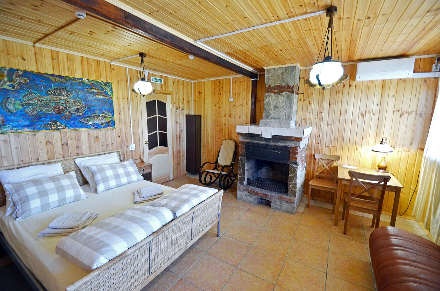 - Одну двуспальную кровать;